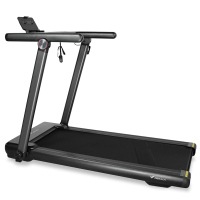 Беговая дорожка MERACH MR-T07 имеет складную конструкцию, что облегчает её хранение и перемещение благодаря транспортировочным роликам. Удобная подставка для планшета или смартфона позволяет заниматься с любимыми развлечениями, а USB-разъем для зарядки устройства обеспечивает дополнительный комфорт. Также предусмотрены сенсорные датчики на поручнях для измерения пульса, что позволяет контролировать состояние во время тренировки.